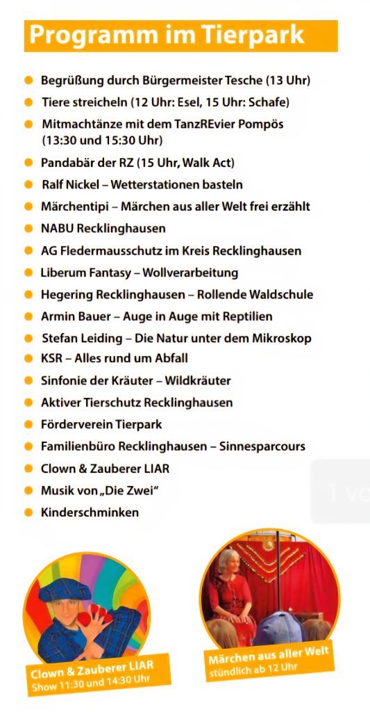 Erlebe das Tierparkfest Recklinghausen am 14.09.2025 mit Clown Zauberer LIAR. Eintritt frei! Familienfest mit Zaubershow, Tieren & Mitmachaktionen.